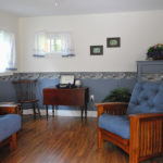 The Lupine Cottage is situated in a leafy clearing steps from the forest. This private cottage features a living room with a pull-out sofa and additional seating area, as well as a separate bedroom with a king size bed. The bathroom includes both a bathtub and shower. The room is air conditioned with cable television, wifi, record player and records.