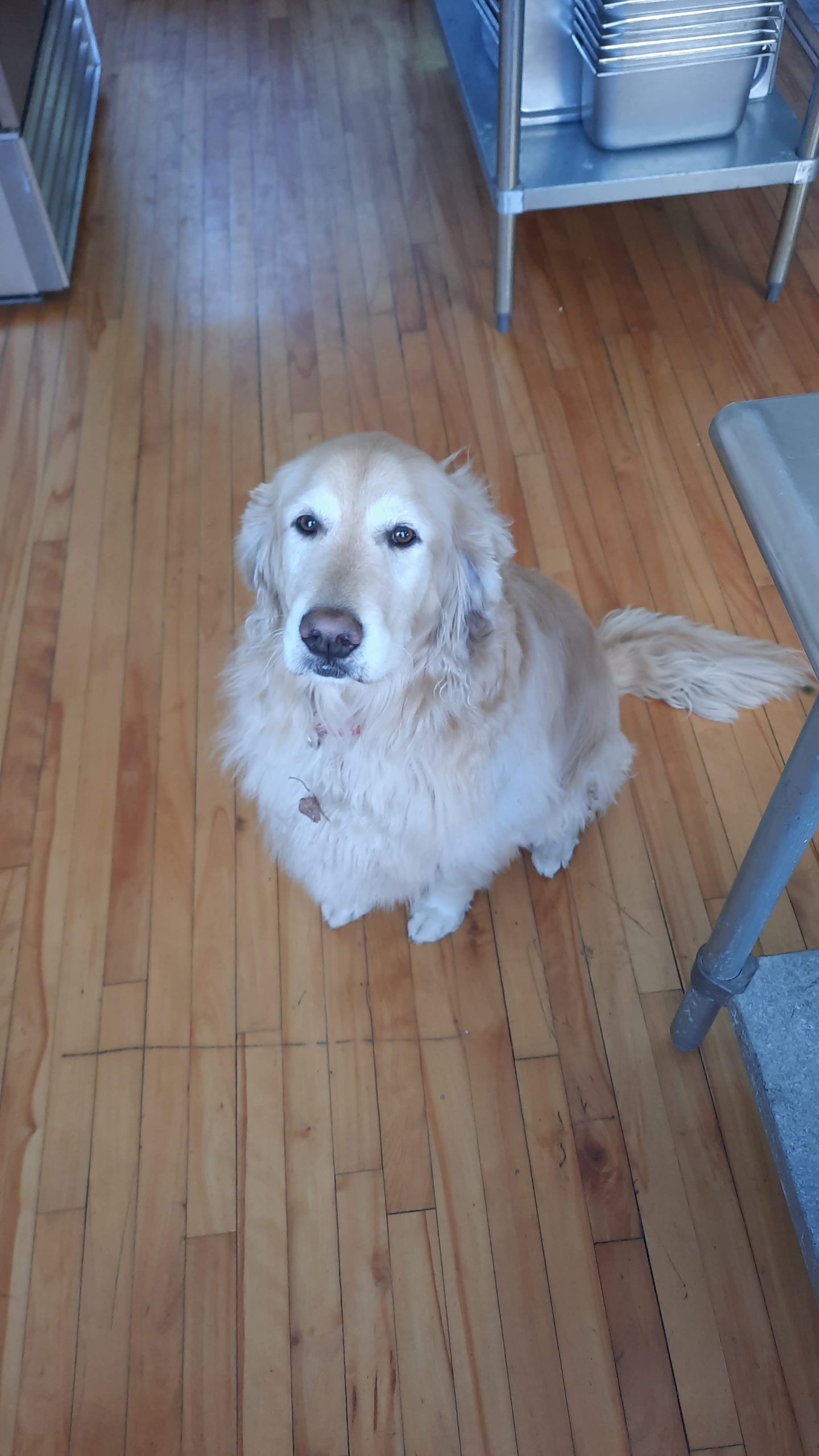 All friendly breeds, regardless of size, are welcome. Our “official greeter” – Grace, a Golden Retriever — will probably say hello with a wag of her tail when you arrive.